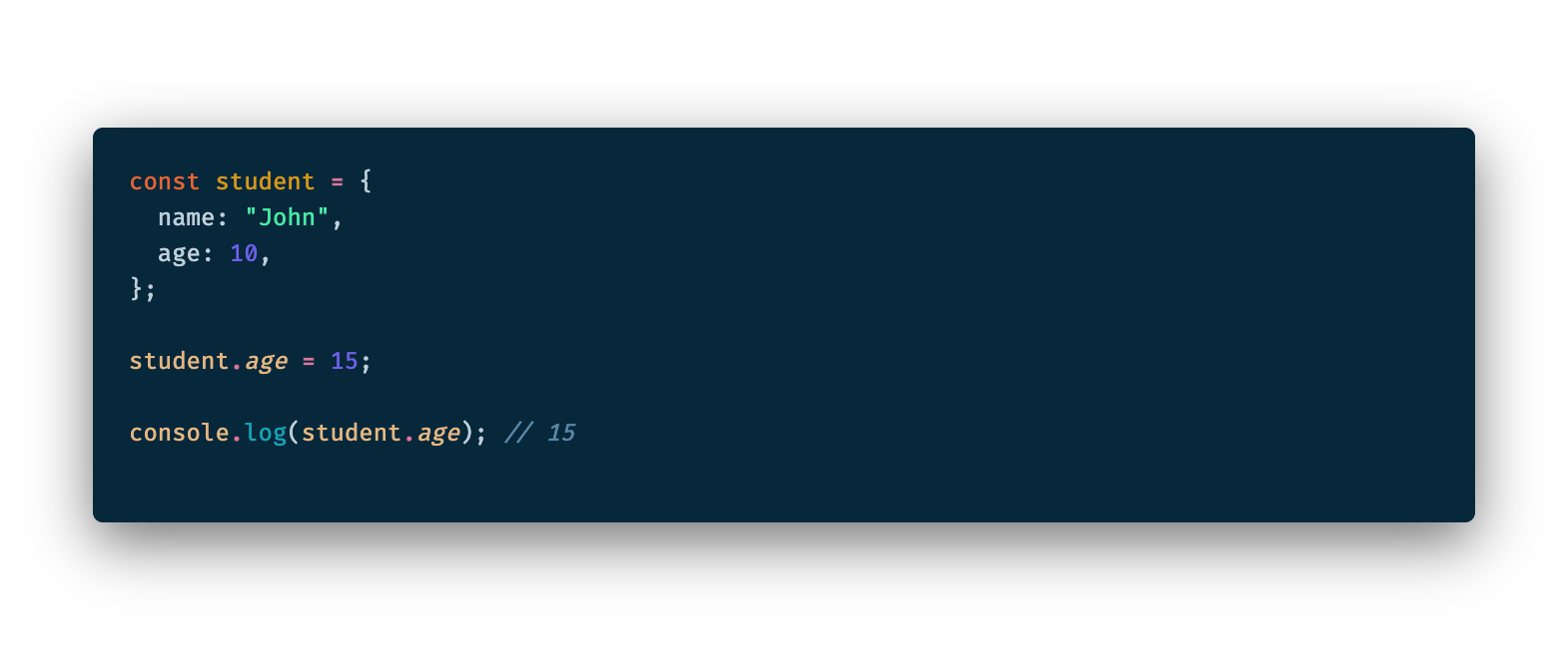 단, const 키워드로 선언된 변수에 객체를 할당한 경우에는 프로퍼티를 생성하고 삭제하거나 값을 변경하는 것은 가능합니다.