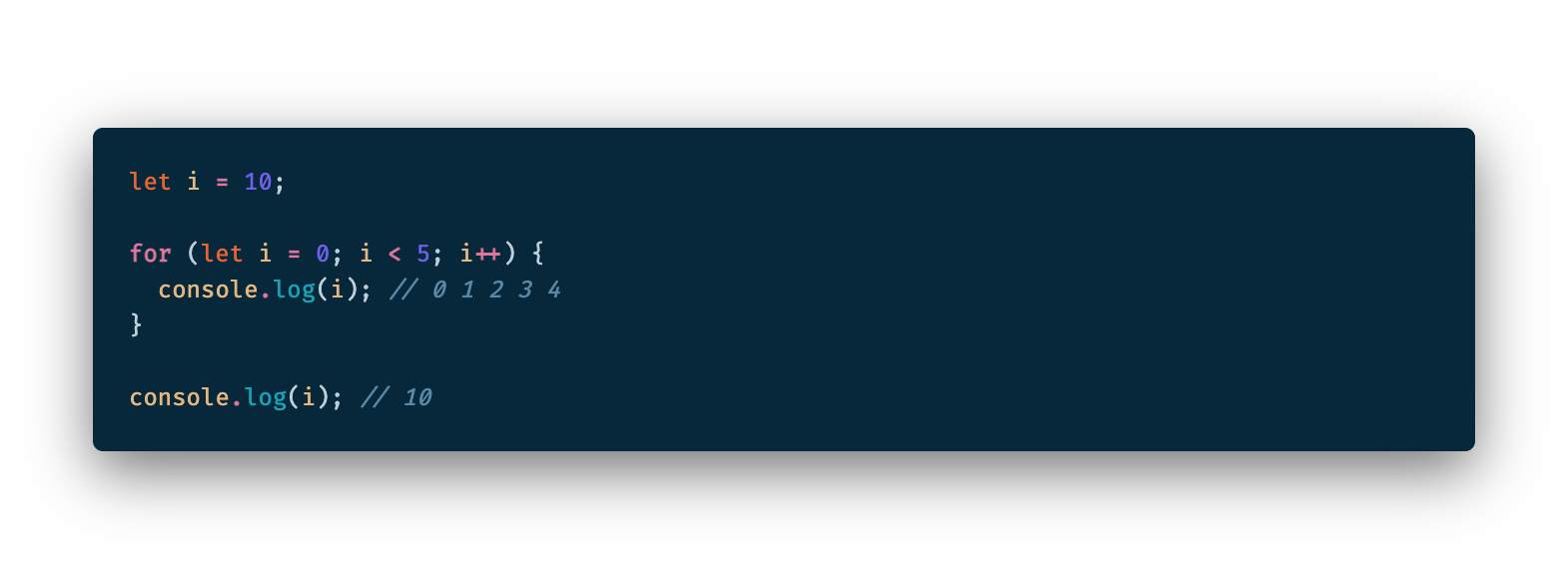 초기화문이 있는 변수 선언문은 자바스크립트 엔진에 의해 var 키워드가 없는 것처럼 동작합니다.