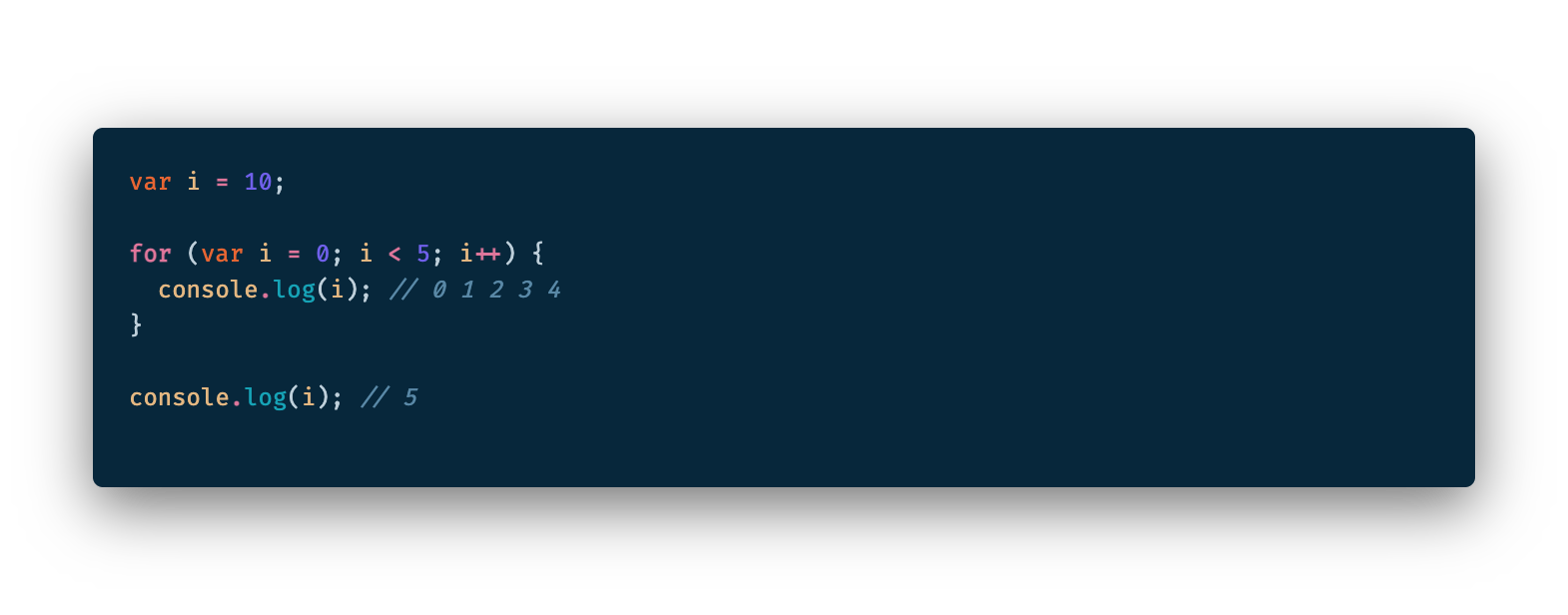 var 키워드로 선언한 변수는 함수 레벨 스코프를 따르기 때문에 외부에서 선언 한 변수를 코드 블록 내에서 변경할 수 있게 됩니다