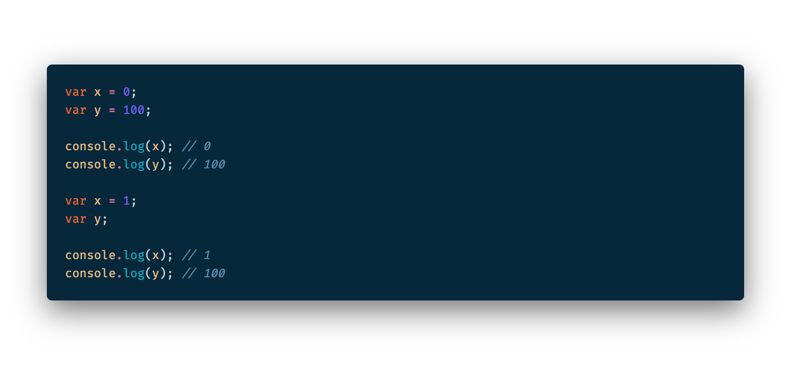 - ES6를 사용한다면 var 키워드는 사용하지 않는 것이 좋습니다.