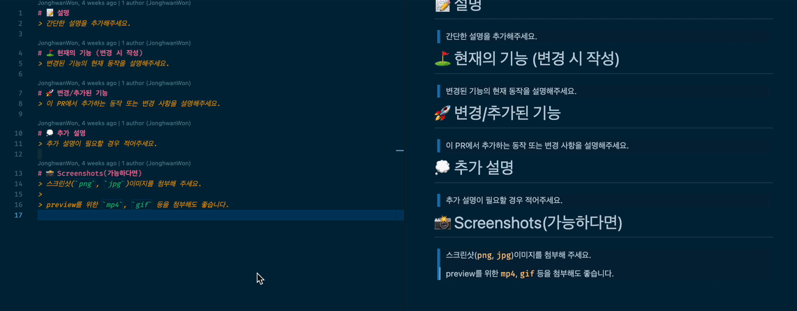 README.md는 물론 issue template, pull request template를 만들어 사용하기도 하고